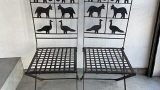 フォールディングアイアンチェアです。動物のモチーフがかわいいアクセントになっています。お持ち込み買取歓迎しております!