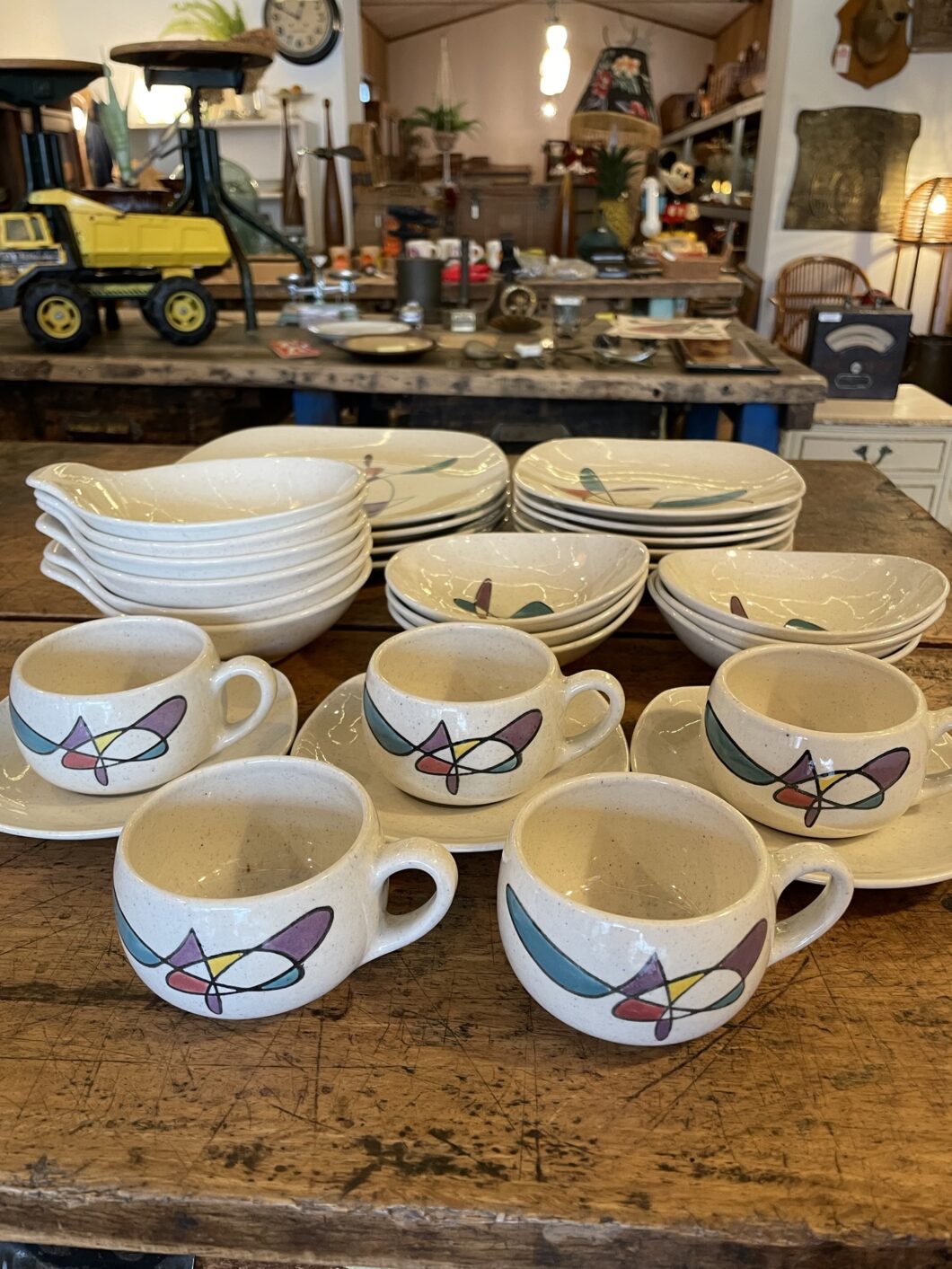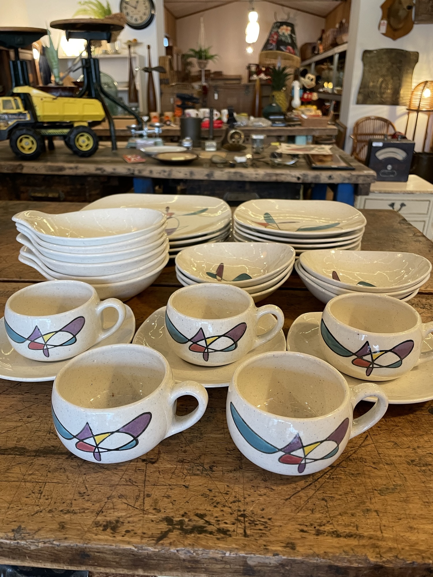 ⭐︎NEW⭐︎高松市にて買取いたしました! 入荷情報 2026.03.22 Metlox1920年代から歴史を持つカリフォルニアのメーカーになります。こちらは50年代に作られた”Poppytrail”シリーズのフリーフォーム柄です。大量に入荷しました。アトミックエイジがまさに!な感じですが大人っぽく上品な佇まいでおすすめです! 買取のご依頼誠にありがとうございました!